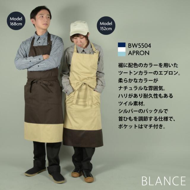 BW5504 エプロン 首掛けタイプ ホルターネック 男女兼用 ツートンカラー ホワイト ベージュ ブラウン 白 茶色 大きいサイズ BLANCE 住商モンブラン
