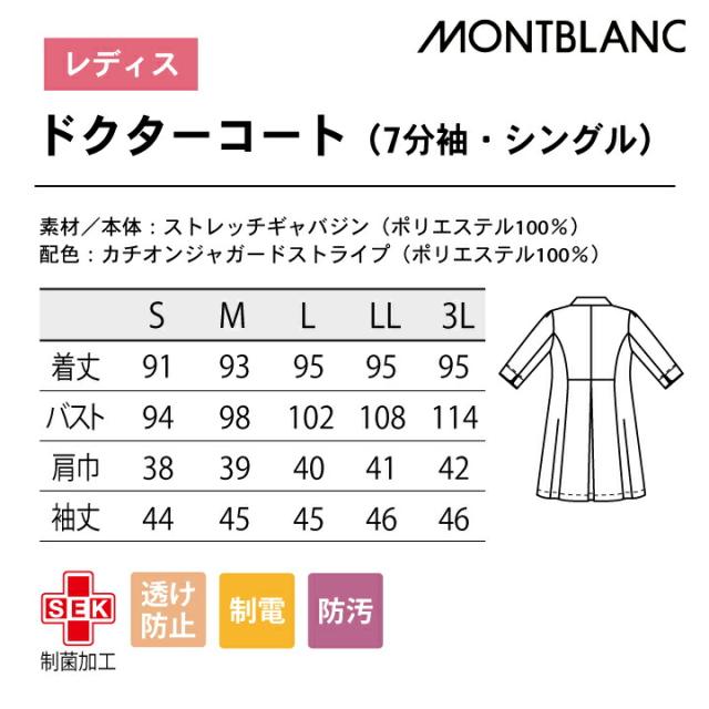 EN121-11 住商モンブラン EN女医会 ドクターコート 女性 レディース 7分袖 上品 おしゃれ シングル ストレスフリー 医療用 白衣 医師 診察衣 病院 研究 実験衣 薬剤師 sm-en121