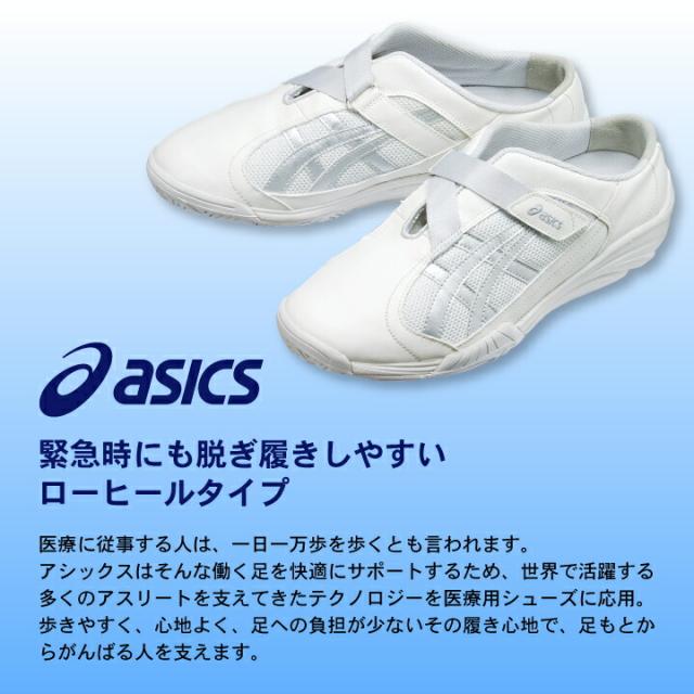 asics 緊急時にも脱ぎ履きしやすいローヒールタイプ。 通常の歩行では脱げにくい構造の、医療・介護従事者のためのシューズ。 ユニセックス ナースシューズ スニーカー 女性 男性