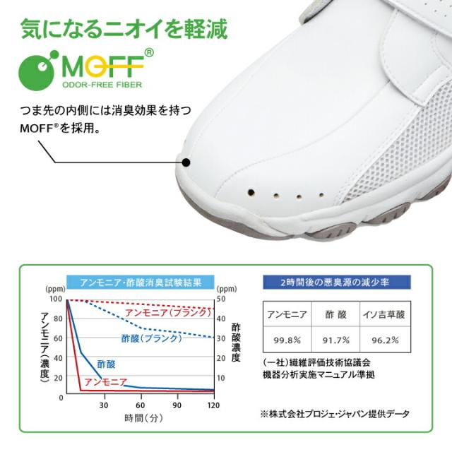 シューズ内部のつま先部分には、消臭効果のあるMOFFを使用。