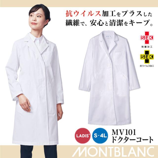MV101 ドクターコート レディース 抗ウイルス加工 制菌 医療用 医師 ドクター 住商モンブラン メディカル ユニフォーム