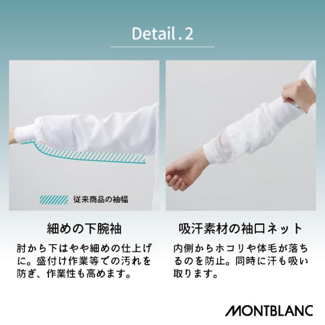 モンブランの衛生ユニフォームは、素材や縫製、デザインなど細部にまでこだわり、異物混入を抑える機能と快適性を実現しています。