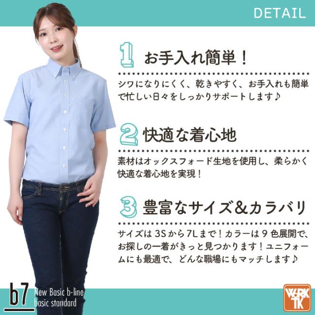半袖シャツ オックスフォード ボタンダウン メンズ レディース 柔らかい 通気性 耐久性 乾きやすい イージーケア 動きやすい ユニフォーム 制服 飲食 オフィス イベント カジュアル ビジネス セブンユニフォーム su-gh7020