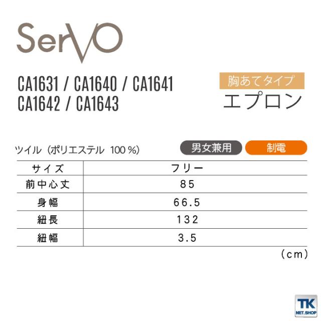 サーヴォ サンペックス 胸当て エプロン 男女兼用 制電 飲食 サービス業 カフェ 厨房 CA1631 CA1640 CA1641 CA1642 CA1643 SUNPEX SERVO ネコポス sv-ca1631