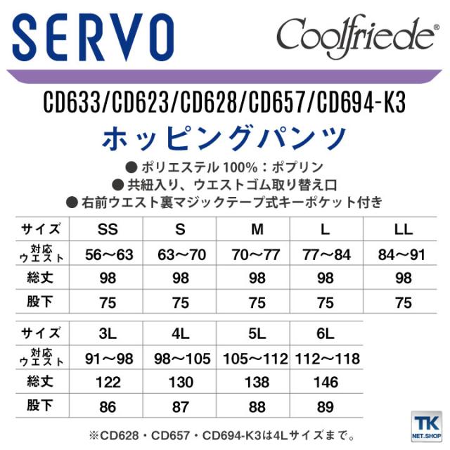 SERVO 食品工場 ユニフォーム 高温作業現場向け 抗菌 制電 吸汗 速乾 男女兼用 CD633 CD623 CD628 CD657 CD-694-K3