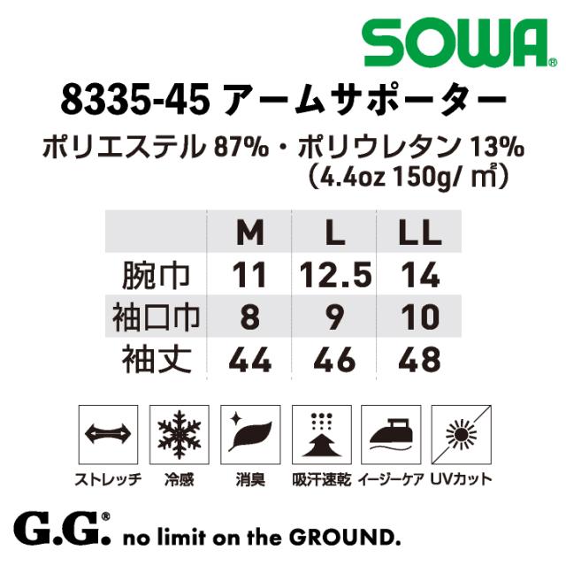 SOWA アームサポーター 春夏 秋冬 インナー メンズ レディース ストレッチ 冷感 消臭 吸汗速乾 イージーケア UVカット 仕事服 作業着 おしゃれ ネコポス sw-8335-45