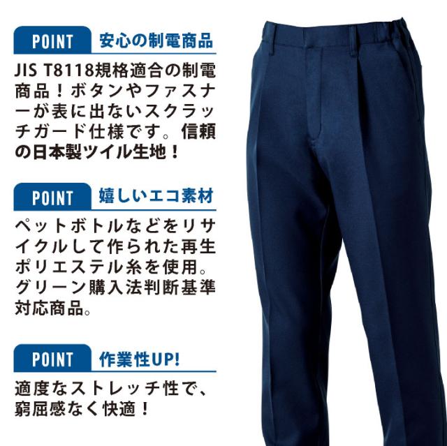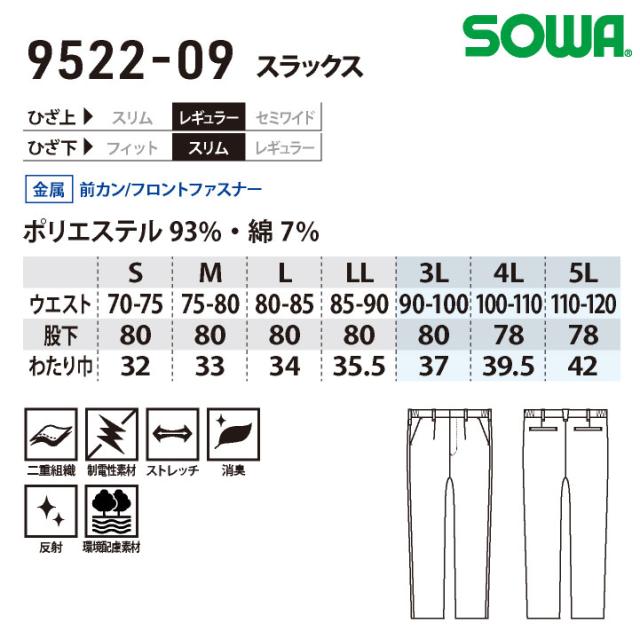 SOWA スラックス 秋冬 パンツ メンズ レディース ECO 制電 裏綿 JIST8118規格適合 作業服 仕事服 おしゃれ ワークパンツ 作業ズボン sw-9522-09