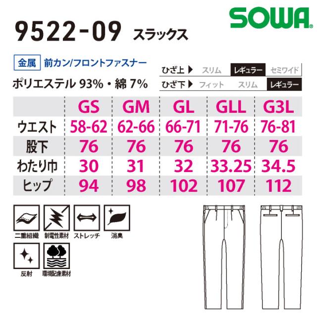 SOWA スラックス 秋冬 パンツ レディース 女性用 ECO 制電 裏綿 JIST8118規格適合 作業服 仕事服 おしゃれ ワークパンツ 作業ズボン sw-9522-09-ladys