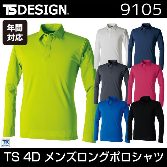 TS DESIGN 4D メンズロングポロシャツ 作業服 作業着 長袖ポロシャツ ストレッチ 吸汗速乾 形状安定 帯電防止 春夏 秋冬 tw-9105