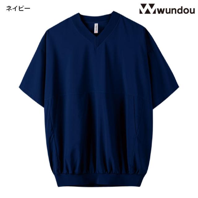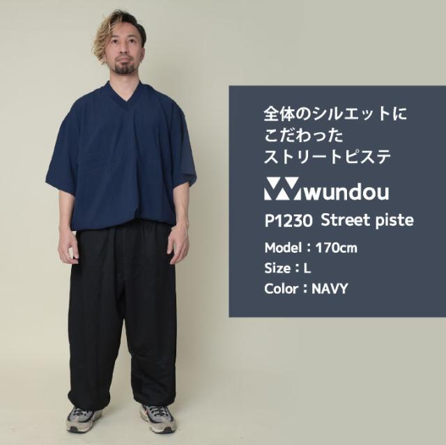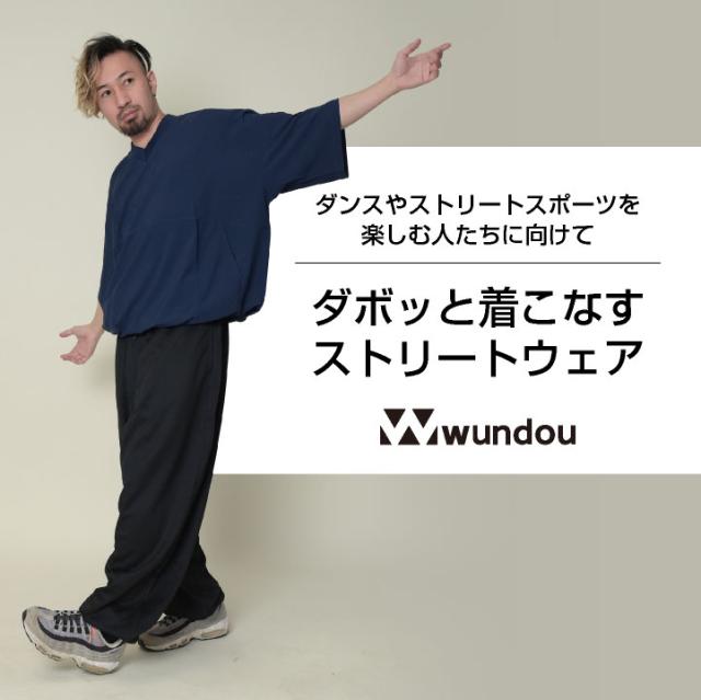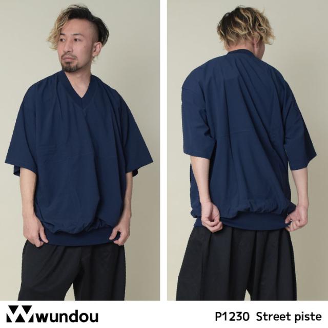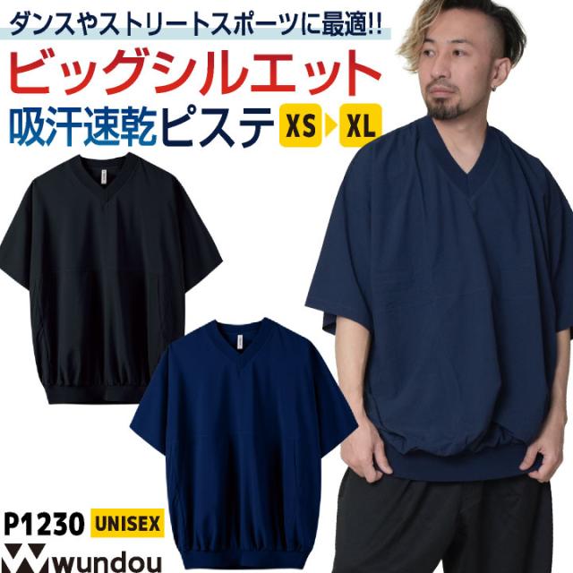 wundou ビッグTシャツ Vネック オーバーサイズ ビッグシルエット ピステ 半袖 無地 シンプル ダンス 衣装 ヒップホップ スケボー スケートボード ストリート スポーツ 練習着 部活 カジュアル ネイビー ブラック ウンドウ wd-p1230