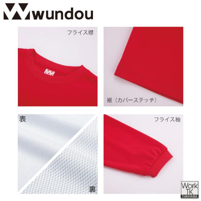 wundou P350 ドライライト長袖Tシャツ 子どもから大人まで、秋冬の練習着として人気の定番長袖Tシャツ。 裏地は通気性が良いメッシュ素材。 吸汗速乾 男女兼用