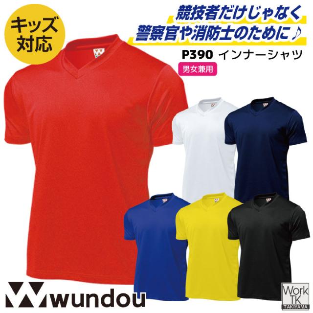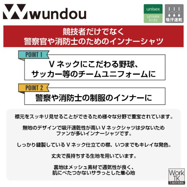 wundou P390 ドライライトVネックTシャツ 競技者だけでなく警察官や消防士のためのインナーシャツ。 裏地は通気性の良いメッシュ仕様。 吸汗速乾 男女兼用