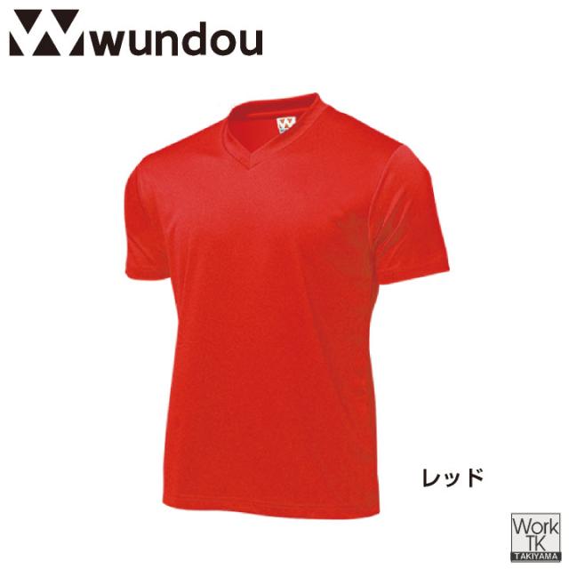 wundou Vネック ドライ Tシャツ 半袖 大人 子供 ジュニア キッズ 吸汗速乾 無地 スポーツ ジム ヨガ トレーニング 部活動 練習着 野球 サッカー ユニフォーム 体育祭 運動会 警察官 消防士 黒 白 青 赤 紺 黄色 ウンドウ ネコポス wd-p390