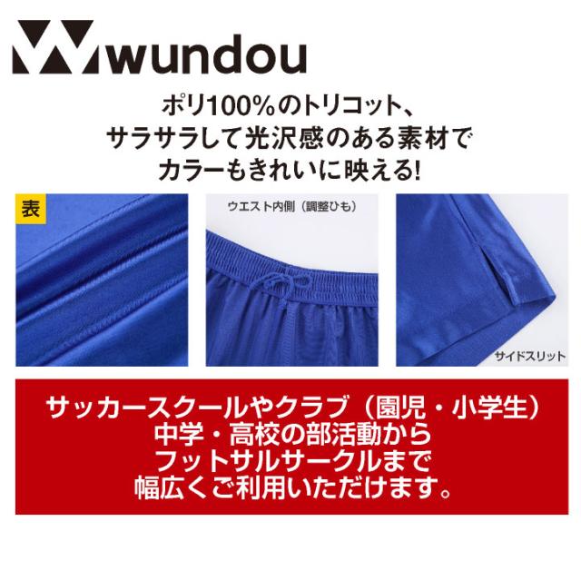 wundou P8001 サッカーパンツ リーズナブルで練習着やお子様用にぴったり! 速乾性があり、サラサラして光沢感のあるポリ100%トリコット素材。 吸汗速乾 男女兼用