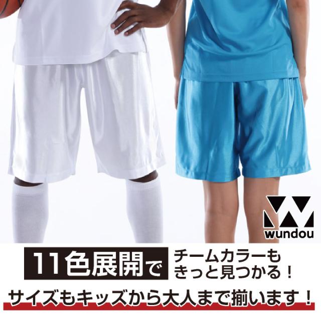 wundou バスパン ハーフパンツ 大人 子供 ジュニア キッズ 無地 部活 小学校 中学 高校 ユニフォーム 練習着 スポーツ バスケットボール ダンス衣装 白 黒 青 赤 紺 ホワイト ブラック ブルー レッド ネイビー ウンドウ ネコポス wd-p8500