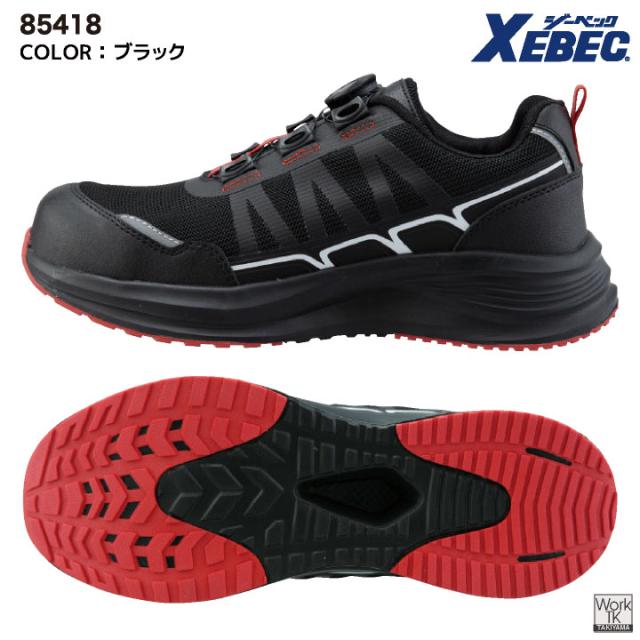 XEBEC 85418 セーフティシューズ 着脱・調整が簡単なダイヤル調整システムを搭載! 軽量設計で、クッション性に優れたEVAミッドソールが足への負担を軽減。
