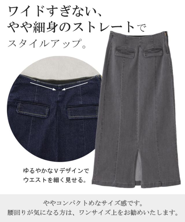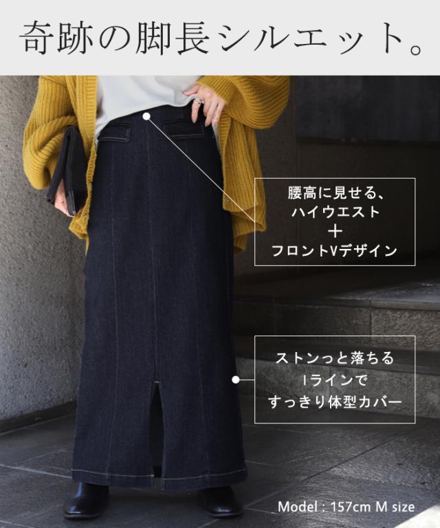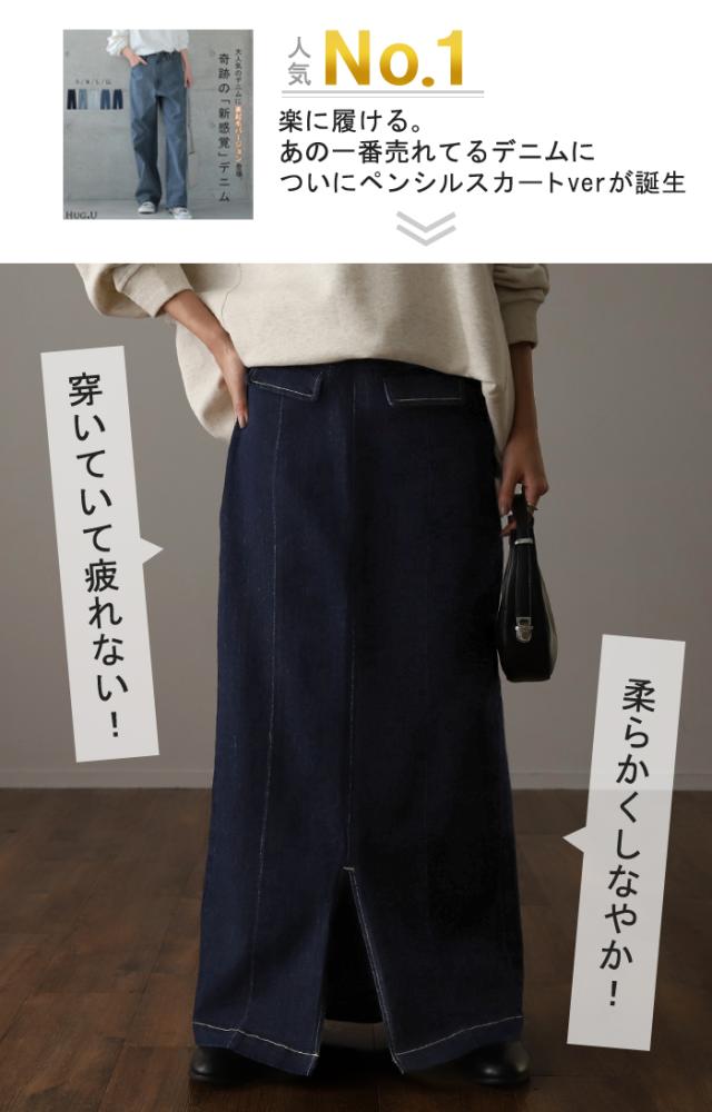 『 奇跡のラク 脚長 スカート』デニム デニムスカート レディース ボトムス ロングスカート マキシ丈 マキシスカート ストレート ペンシルスカート スリット スリットスカート ロング タイト きれいめ ゴム 大きいサイズ 体型カバー 冬 秋 HUG.U 秋新作