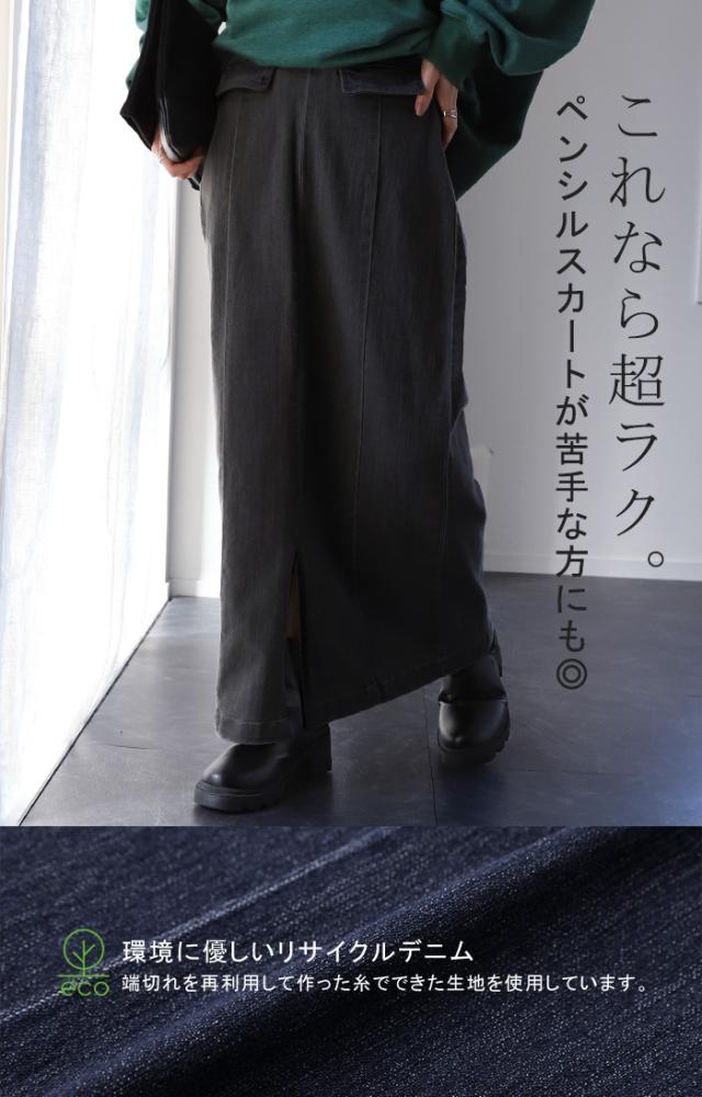 新感覚 新感覚デニム 新感覚ボトム ボトム デニム デニムタイトスカート スリットロングスカート タイトスカート タイト ミモレ ペンシル ロング丈 ロング丈スカート ロング丈デニムスカート デニムロングスカート マキシ マキシ丈スカート 膝下 ひざ下 ミモレ丈 リサイクルデニム リサイクル エコ サスティナブルデニム サスティナブル サスティナ SDGs 細見え 着やせ 着痩せ 脚長 美脚 美脚効果 ゴムウエスト ゴムウェスト ウエストゴム ウェストゴム ゴム ウエスト ウェスト ハイウエスト ハイウェスト YKK YKKファスナー YKKファスナー付き センタースリット センタースリットデニム スリットデニム Iライン Iラインデニム ポケット ポケット付き ラクチン らくちん 楽ちん 楽 動きやすい トレンド ストレッチ 伸びる 伸縮性 伸縮 ストレスフリー レディースファッション シンプル フェミニン ガーリー デート 無地 シンプル ユーズド風 vintage風 ヴィンテージ風 ビンテージ風 古着風 ゆったり ゆる ゆったりサイズ ゆるカジ ゆるい ゆるファッション グレー ウォッシュグレー 灰 灰色 デニムブルー ブルー インディゴ インディゴブルー ネイビー ホワイト 白 白色 デニムホワイト ホワイトデニム ブラック デニムブラック黒 黒色 レディースファッション 旬 トレンド レイヤード 重ね着 重ね レイヤードコーデ 体型カバー 大きいサイズ プラスサイズ ビッグ ビック big ビックシルエット ビッグシルエット ビックサイズ ビッグサイズ オーバーサイズ オーバー 着痩せ 大き目 大きい 大きめ フリーサイズ フリー S M L LL 2L XL 3L XXL LLL カジュアル ナチュラル ベーシック オフィス オフィスカジュアル テレワーク リモートワーク リモート オンライン飲み会 おうち時間 お家時間 着回し 母の日 プレゼント ギフト 贈り物 クリスマス シンプル 大人 大人カジュアル オトナ 女性 綺麗 綺麗目 きれい キレイ キレイめ キレイメ きれいめ 高見え 上質 上品 20代 30代 40代 50代 おしゃれ お洒落 オシャレ 可愛い かわいい カワイイ カッコいい 格好良い カッコイイ 春 夏 秋 冬 春夏 秋冬 HUG.U HUGU ハグユー はぐゆー