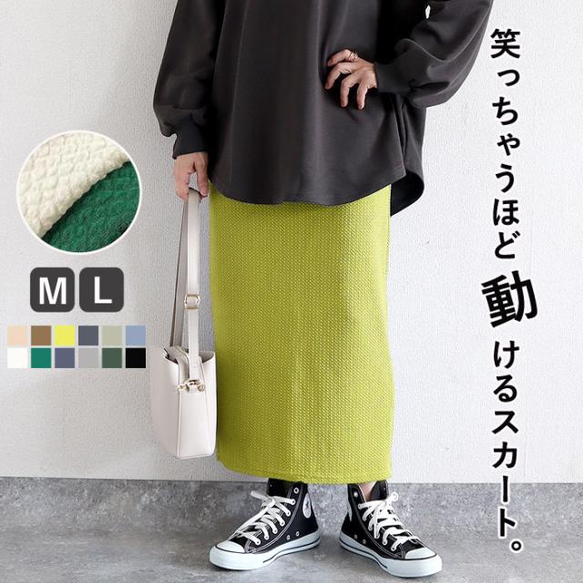 【クーポンで1090円】 秋新作 スカート レディース エンボス リブ ロング タイト [郵2]^b405+b425^ ★