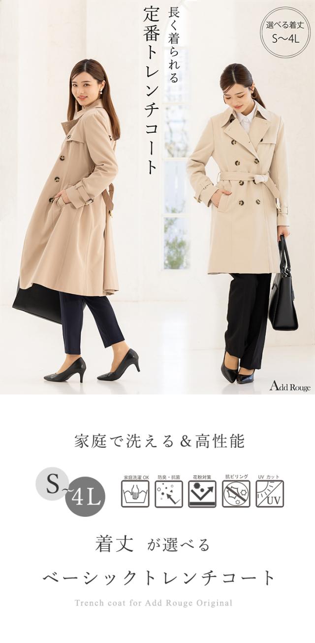 【手洗いOK 取り外しライナー付き】花粉対策 トレンチコート レディース オールシーズン対応 スプリングコート 通勤 リクルート 大きいサイズ|小さいサイズ 洗える ビジネスコート ビジネス トレンチ ol スタイル(b2588-512958) [sk便]