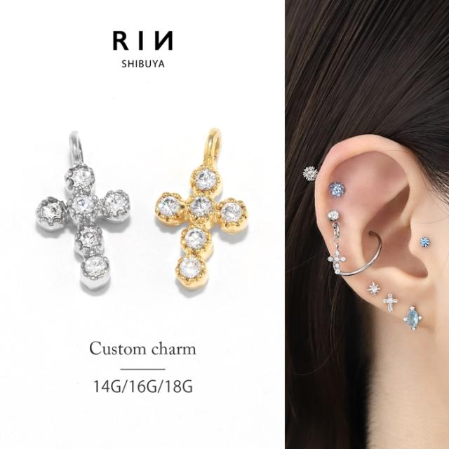 14G 16G 18G チャーム クロス 十字架 シルバー ゴールド ボディピアス アレンジ パーツ カスタマイズ 片耳用 チャーム0006 b536-001