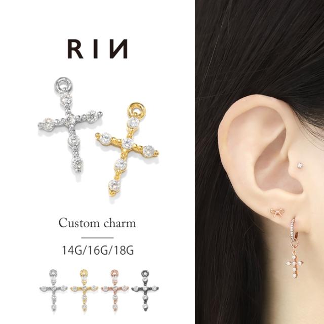 14G 16G 18G チャーム チャーム0011 クロス 十字架 ジュエル カスタム ボディピ カスタマイズ パーツ 片耳用 チャーム0011 b536-006