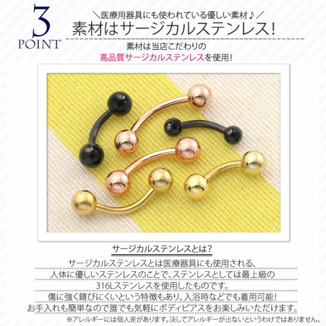 ボディピアス 14G 16G 18G バナナバーベル ヘソピアス ブラック ゴールド ピンクゴールド ネイブル へそピ アイブロウ 臍 へそ ピアス 凛 RIN