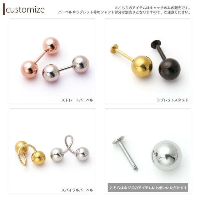 キャッチ ボディピアス 12G 14G 16G 18G カスタマイズ カスタム ボール アレンジ 軟骨ピアス 黒 ブラック シルバー ゴールド ピンクゴールド インナーコンク ヘリックス 舌ピアス