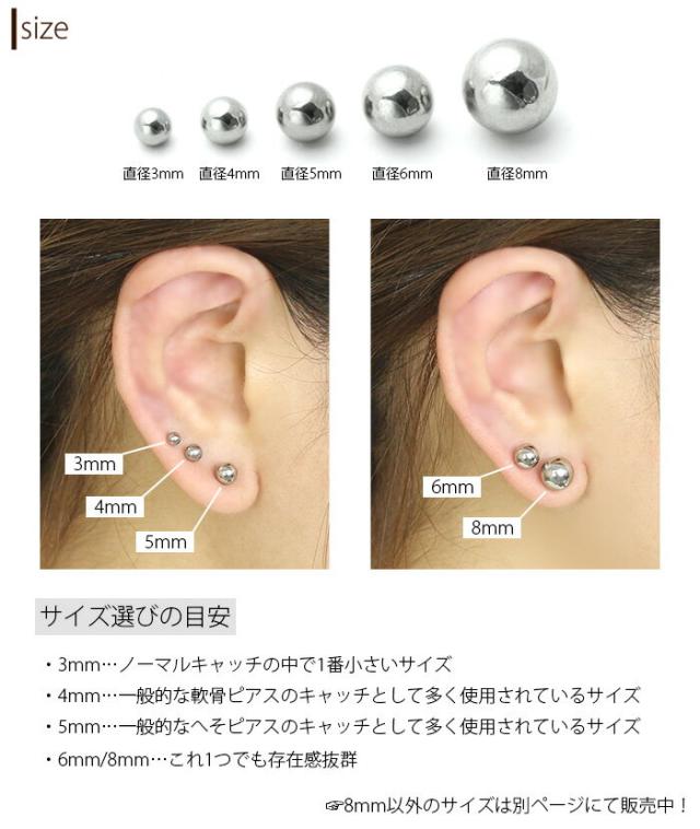 定番 12G 14G 16G 18G 8mm シルバー ゴールド ピンクゴールド ブラック キャッチ カスタマイズ 定番 ボディピアス ボディーピアス 軟骨ピアス 金属アレルギー ボール インナーコンク ヘリックス キャッチ0035 c-0035 「CUS」「colbk」 0622re