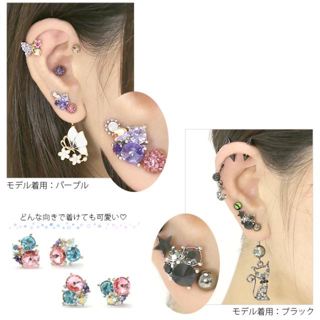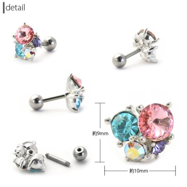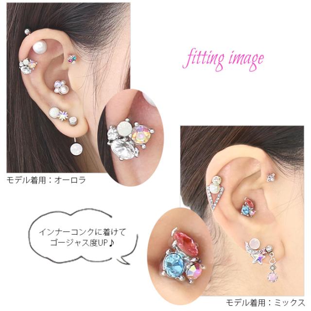 ボディピアス 軟骨ピアス ジュエル オーロラ ミックス パープル ブラック クリア ビジュー ゴージャス サージカルステンレス 金属アレルギー対応 凛 軟骨0690「NAN」「1cml」「party」「shasv」「colbk」 h752-21 0729re