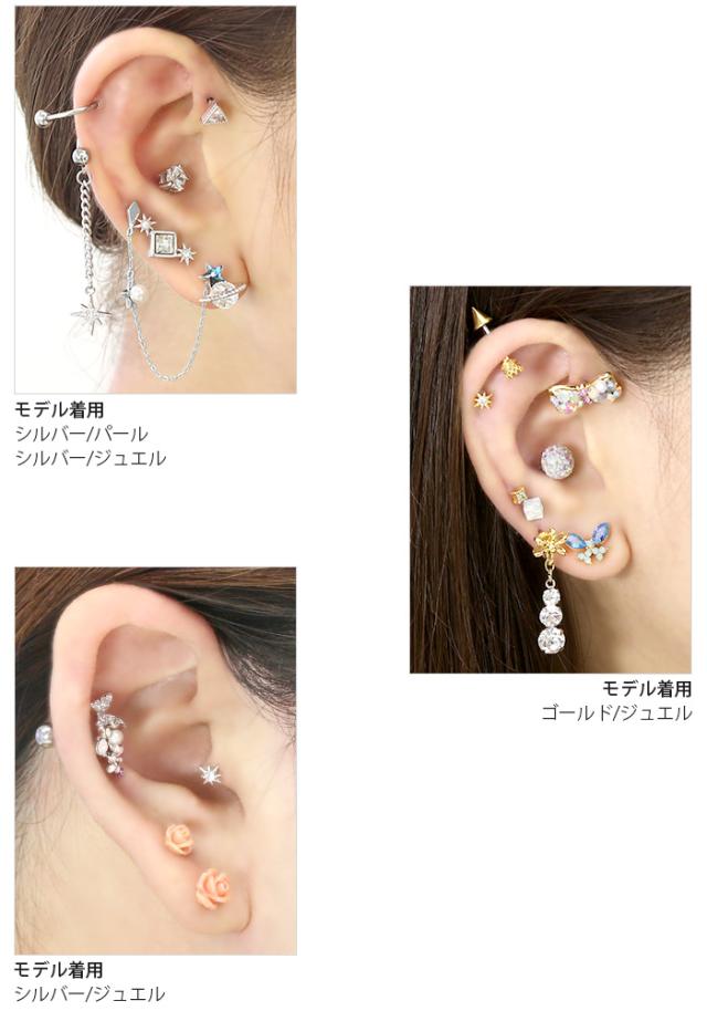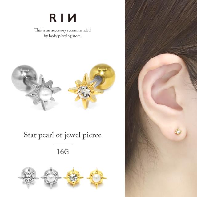 ボディピアス 軟骨ピアス サージカルステンレス セカンドピアス 宇宙 コスモ 星 スター トラガス ジュエル パール りん 凛 クリスマス 「1poi」 h752-30