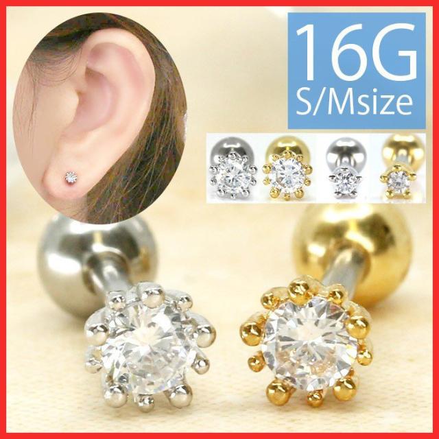 ボディピアス 16G 軟骨 ピアス ジュエル 片耳用 サージカルステンレス ストレートバーベル 金属 アレルギー 対応 小さい プチサイズ 耳たぶ ボディーピアス