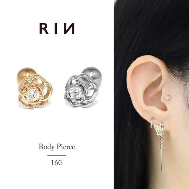 16G 薔薇 バラ 透かしデザイン ジュエル ストレートバーベル 【片耳用】 軟骨1549 rin-019