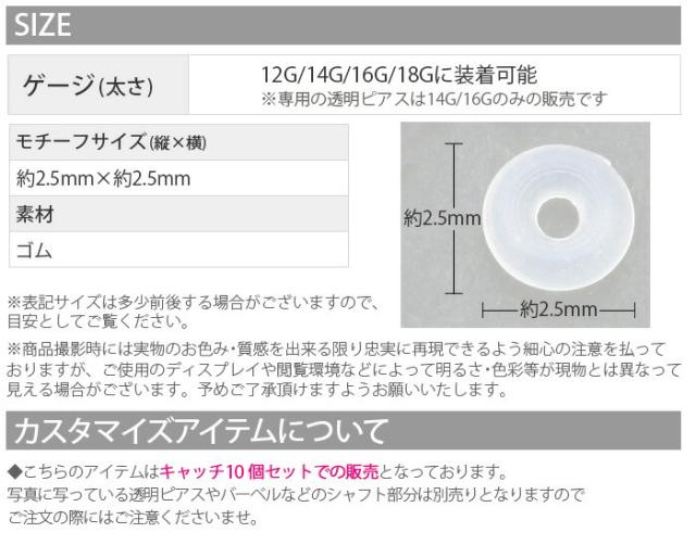 [10個セット]12G/14G/16G/18G透明ピアスキャッチ(Oリング) set-t1142-063-10