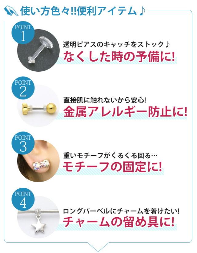 【10個入り】ボディピアス キャッチ 18G 16G 14G 12G 軟骨ピアス 透明ピアス 透ピ 透明キャッチ オーリング Oリング ボディピ 金属アレルギー対応 かわいい 軟骨用 トラガス クリアピアス リング キャッチ シークレット 便利アイテム 片耳