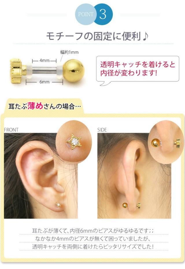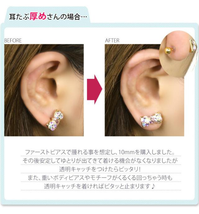 - 可愛くて買ったピアスがぐらついて汗で炎症起こしたりチャームは逆さになったりしてたので購入しましたが、とてもありがたい商品でした。おかげで毎日耳の調子がいいです。