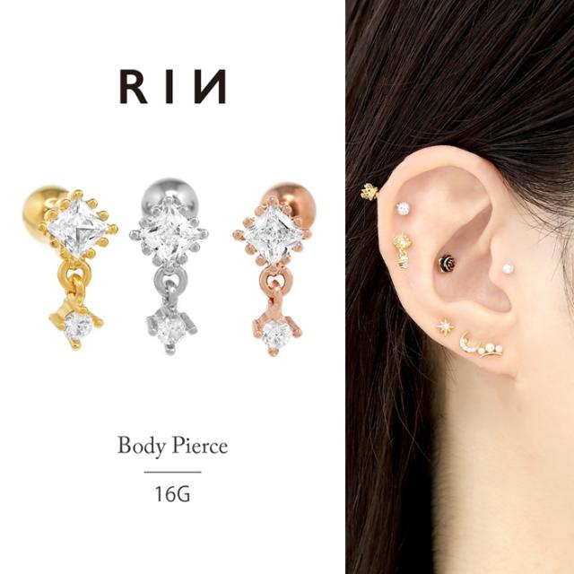 ボディピアス 軟骨ピアス 16G ジュエル スクエア チャーム付き キュービックジルコニア ストレートバーベル ピアス 人気 大人 女性 レディース アクセ プレゼント ギフト 片耳用