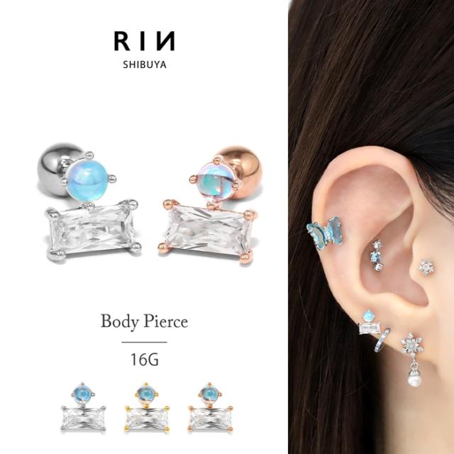 ボディピアス 軟骨ピアス スクエア シンプル きれいめ キラキラ 大人カワイイ 16G ストレートバーベル 片耳用
