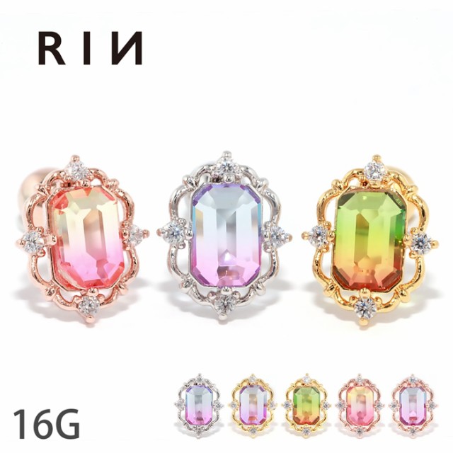 16G グラデーション ジュエル スクエア ストレートバーベル 片耳用 軟骨1276 t1141-69