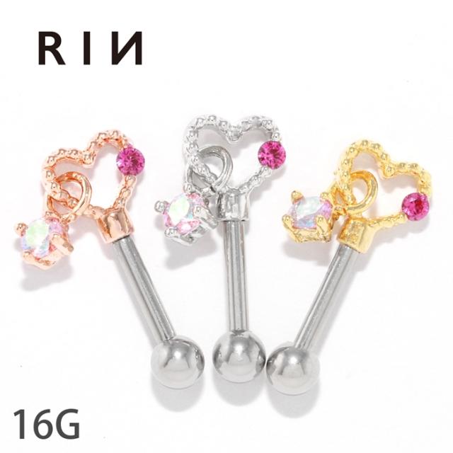 16G ハート ジュエル チャーム ストレートバーベル 片耳用 軟骨1271 t9192-73