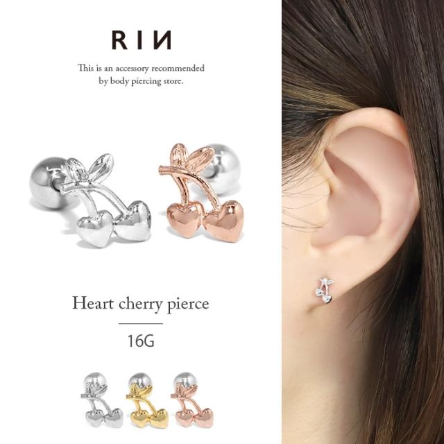 軟骨ピアス かわいい さくらんぼ チェリー ハート キュート サクランボ ストレートバーベル 16G ボディーピアス 軟骨 ピアス ステンレス 16ゲージ 耳 耳たぶ 軟骨用 なんこつ ピアス 片耳用 メンズ 男女兼用 ユニセックス ジェンダーレス アクセサリー おすすめ ポイント消化 body Pierce 凛 RIN ボディピアス専門店 りん 軟骨1345