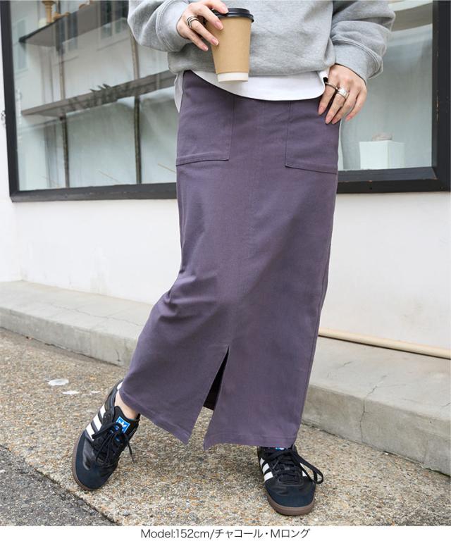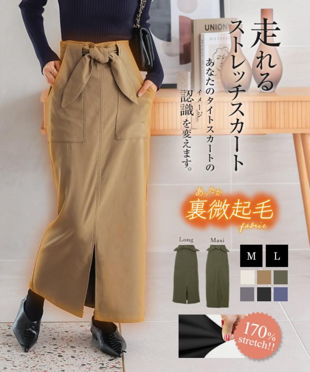 [ 裏微起毛 ] 選べる2サイズ 選べる3丈 走れるストレッチタイトスカート M3799 一部予約 ウエストゴム スリット ロング マキシ