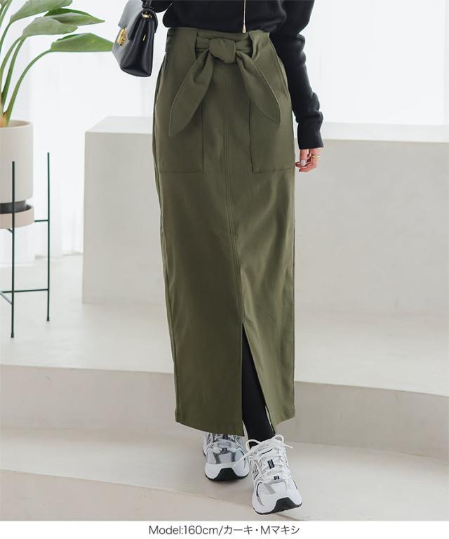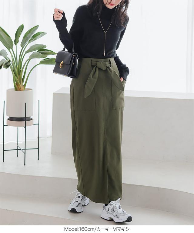 - エクリューとブラックのMロングを購入 いつもマキシなのでロングにしてみたけどショートブーツを履くとちょうどよい 156センチで座るとスリットがひざから入るので動きやすい 生足ではちょっと寒いのでレギン...
