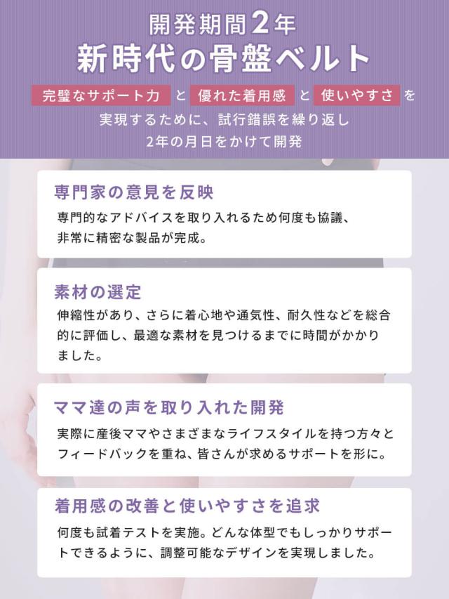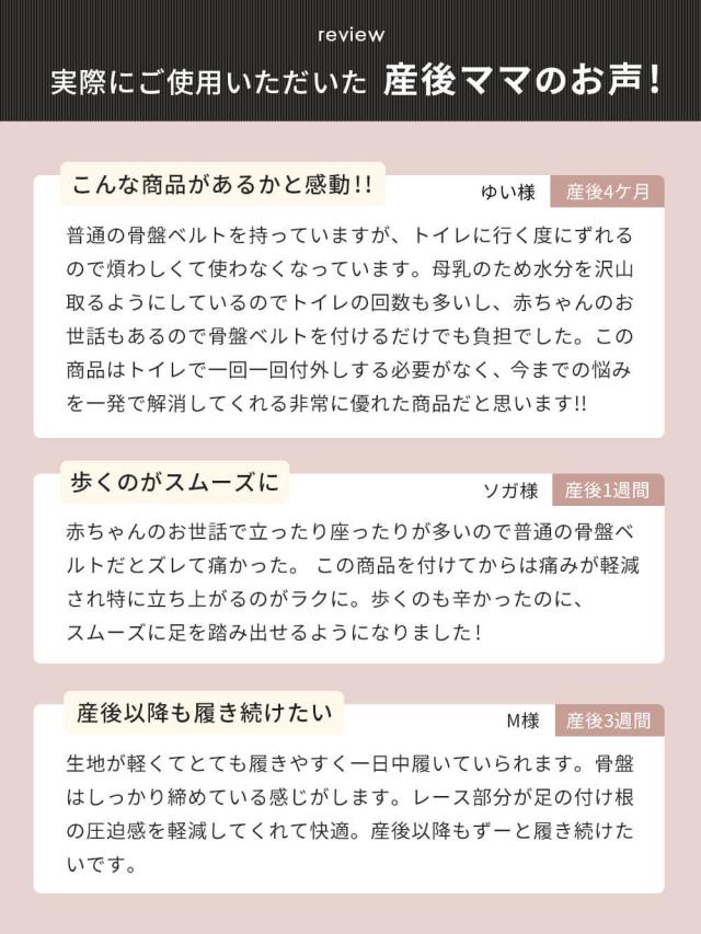 ・軽めのガードルのような快適なつけ心地で、出産直後から長く骨盤ケアができる