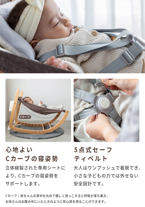 妊娠中はママの特等席、赤ちゃんが産まれたらお気に入りのゆりかごとしてママの温もりや愛情も伝えられます。