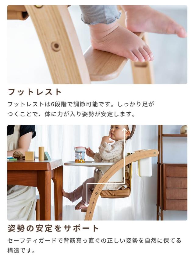 ・新開発バックレストの効果で、背筋がまっすぐ正しい姿勢でお食事に集中できます