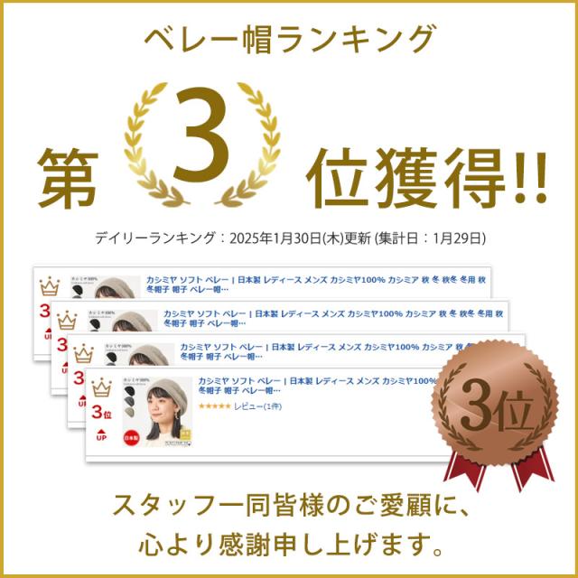 帽子専門店だからこそできる、【日本製】カシミヤ100%のベレー帽。
