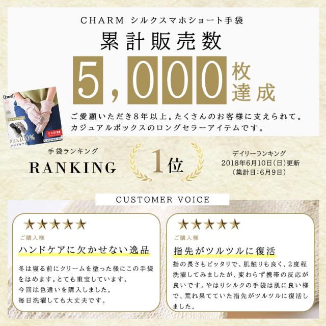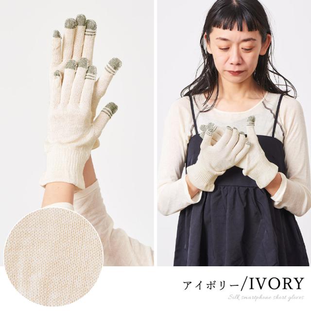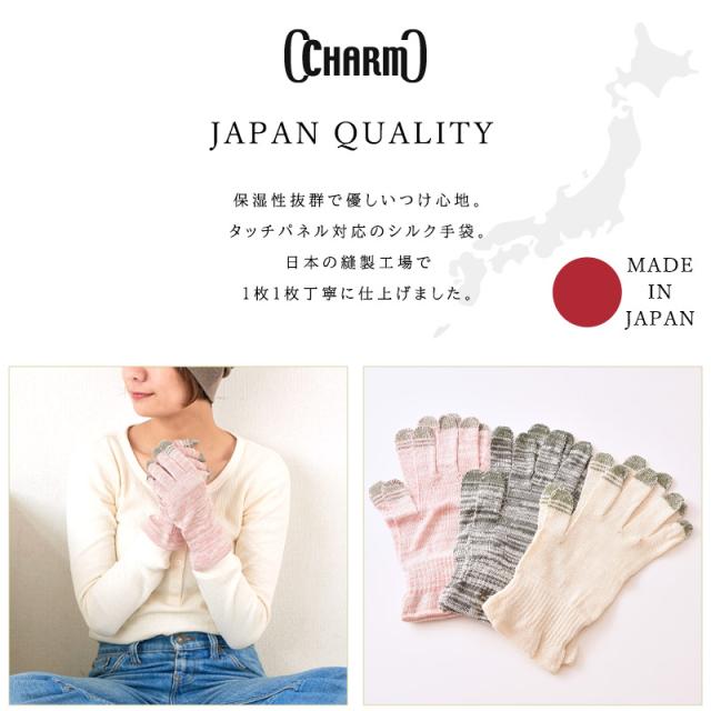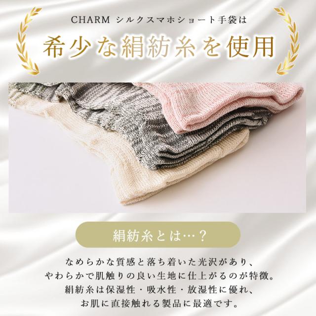 レディース 秋冬 冬用 絹 シルク100% スマホ対応 タッチパネル対応 シルク手袋 スマホ手袋 てぶくろ 寝るとき スキンケア ハンドケア 就寝 敏感肌 手荒れ 乾燥対策 UVカット 日焼け 女性 |【日本製】CHARM シルク スマホ ショート 手袋 ko-sss