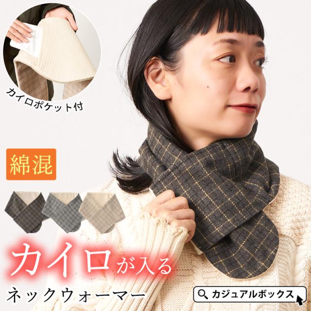 レディース メンズ 秋 冬 秋冬 秋用 冬用 綿 ネックカバー スヌード 首カバー マフラー 通すだけ ティペット カイロポケット付き 首温めグッズ 冷え予防 あったかい 暖かい 室内 首回り 女性 | CHARM カイロが入る コットン ネックウォーマー nw-kai