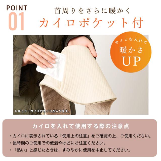 また内側のポケットにカイロを入れることができるので更に首を温めてくれます。